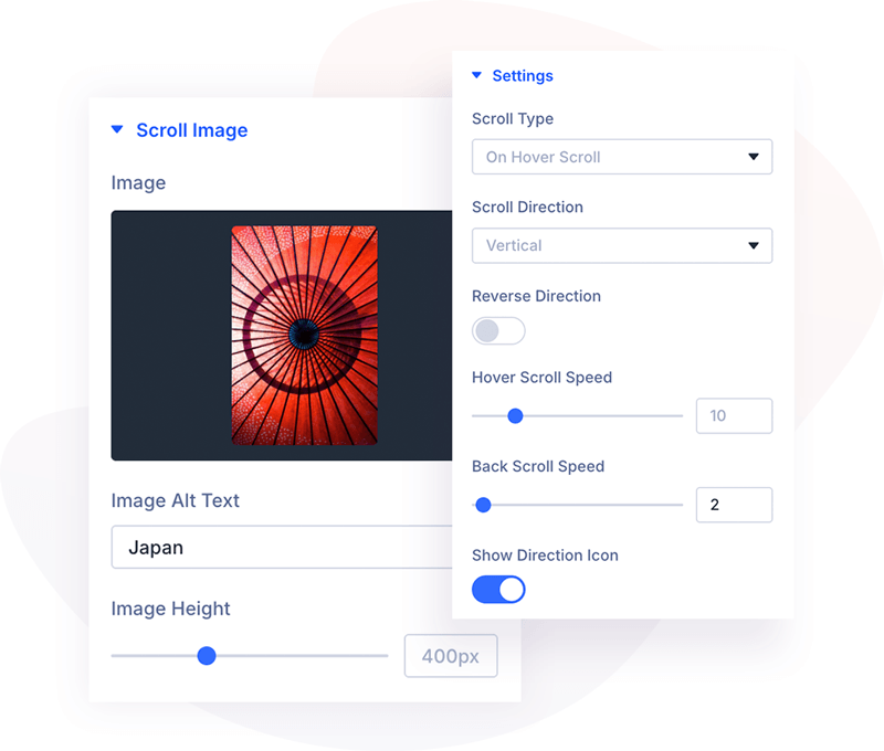 Advanced options available in the module allow you to select the event on which the image will scroll. You can also control the scrolling speed, add an image overlay, animated icon, and much more.